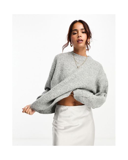 Asos Fluffy Rib Sweater With Crew Neck In White Lyst Uk