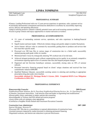 Linda Tompkins Resume Updated April 2011 Pdf